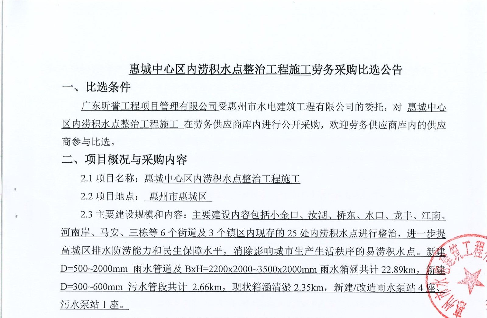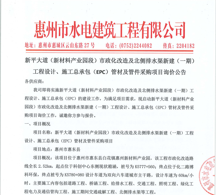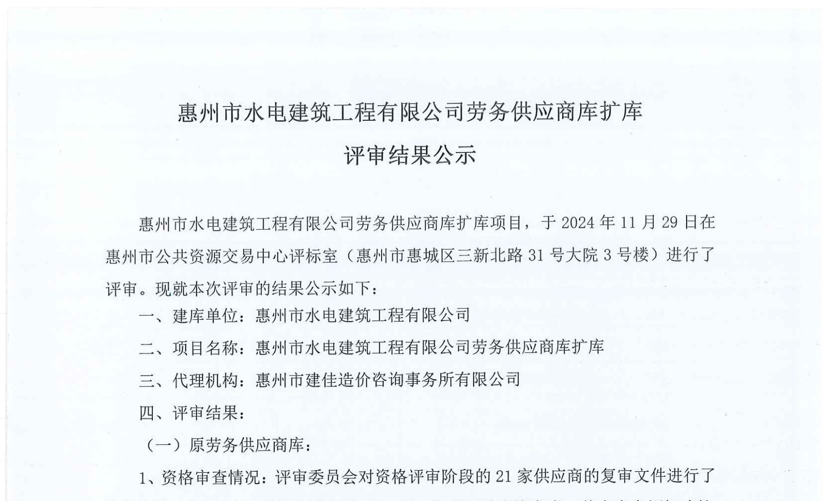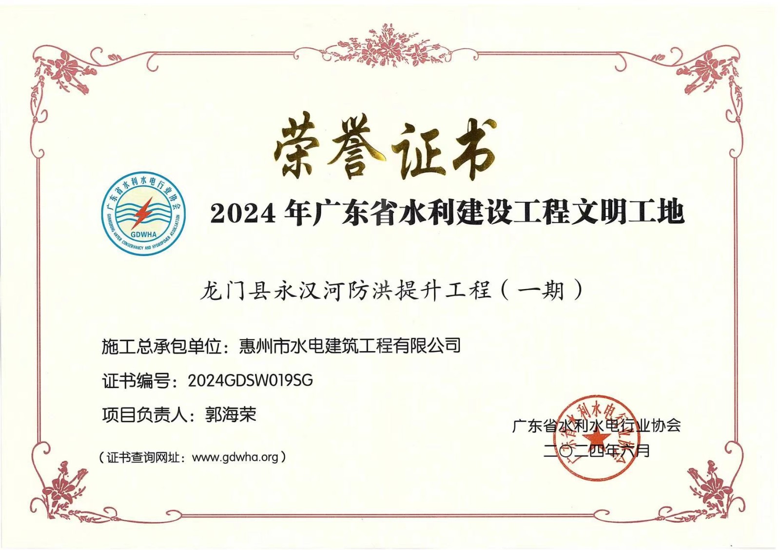 惠州市水電建筑工程有限公司成立于一九六四年四月,隸屬惠州市水務(wù)集團(tuán)有限公司,是一家國有綜合性施工企業(yè),主營水利水電工程、房屋建筑、市政工程等施工業(yè)務(wù)。公司擁有水利水電工程施工總承包一級(jí)、建筑工程施工總承包一級(jí)、市政公用工程施工總承包一級(jí)、公路工程施工總承包三級(jí),公路路基、路面及建筑裝修裝飾專業(yè)承包二級(jí),環(huán)保工程、機(jī)電安裝、河湖整治、輸變電工程專業(yè)承包三級(jí)等經(jīng)營資質(zhì)……